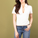 款式介绍 PRODUCT DETAIL + 女装Polo V领衣服,交叉原身交叉流苏饰边。 Women's Polo V-neck short-sleeved top with knitted double coloured fringe trims. 毛料 YARN + 2 条 32S/2 麻爽高捻棉 2 Ply 32S/2 Linen-feel High-twist Cotton 针种 GAUGE: 14G 编织时间 KNITTING TIME: 77 分钟 MINS (速度 SPEED 70) 模特身高:身高 166 CM / 胸围 80 CM / 腰围 66 CM / 臀围 85 CM Model Measurements: Height 166 CM / Chest 80 CM / Waist 66 CM / Hips 85 CM